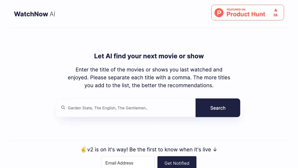 Product Description: Personalized movie and TV show recommendations.