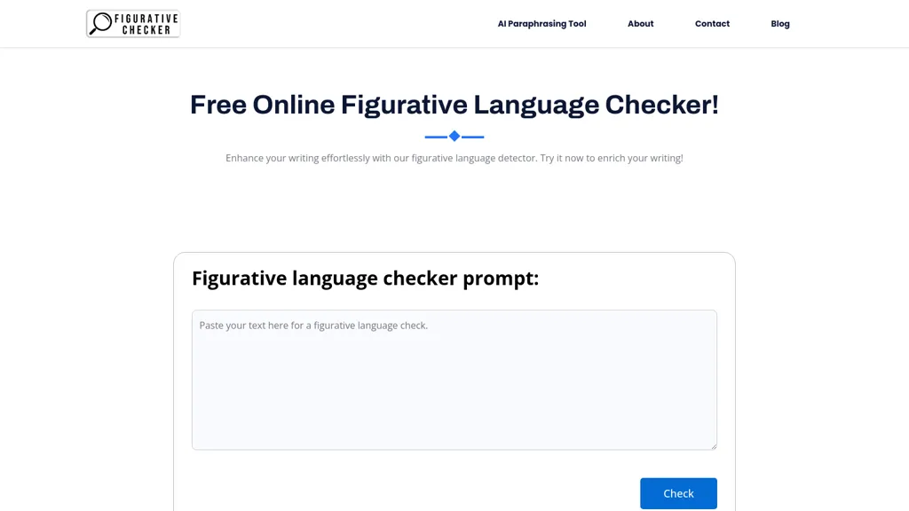 产品描述: Enrich 写作 is an online tool that identifies figurative language elements in text, helping users refine their writing. It enhances expressive capabilities by providing insights into similes, metaphors, 还有更多, making narratives more engaging and impactful..